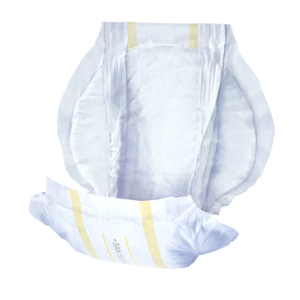 «Дышащие» анатомические подгузники San Seni normal рекомендуются для тех, кому нужны изделия с большей впитывающей способностью, нежели у урологических прокладок.